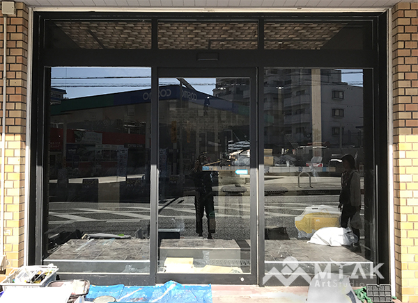 ゴールドリーフを使用したウィンドウサインを描かせて頂きました。