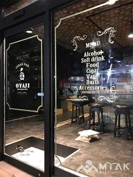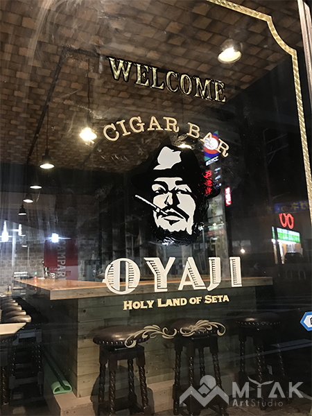 シガーバーの入り口ガラス面に
