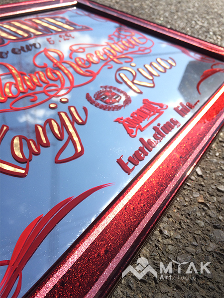 ミラーをベースに、ピンストライプやゴールドリーフで描き
