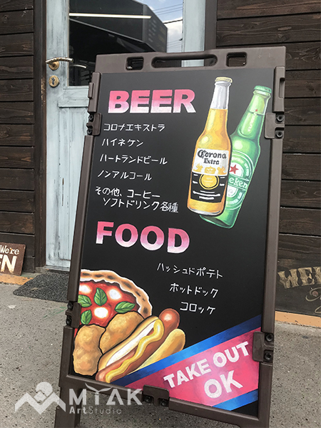 チョークアートによるオリジナルA型看板を作成させていただきました。