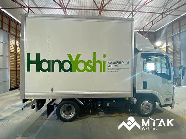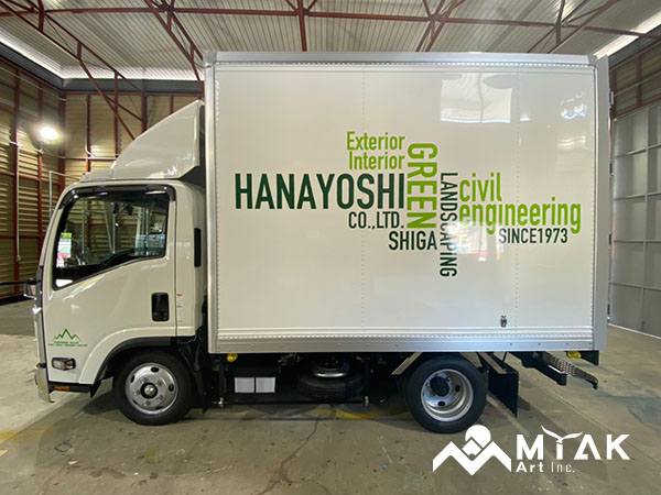 トラックへの描き文字をデザイン、施工させていただきました。 スタイリッシュなデザインに手描きならではの味が加わり カッコイイトラックに仕上がりました。