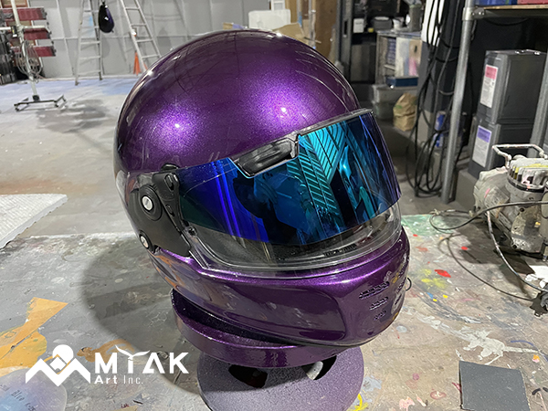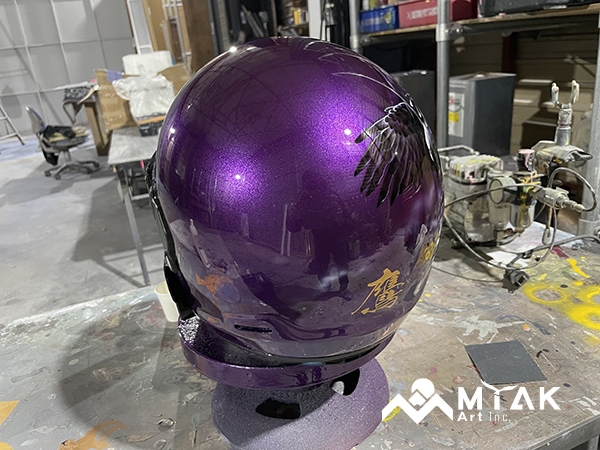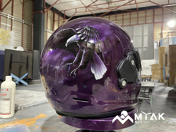 フルフェイスのヘルメットを塗り替え、エアブラシでイーグルを描かせていただきました! イラストはモノトーンで描き、目立ちすぎずも存在感のあるかっこいい仕上がりとなりました(^ ^)