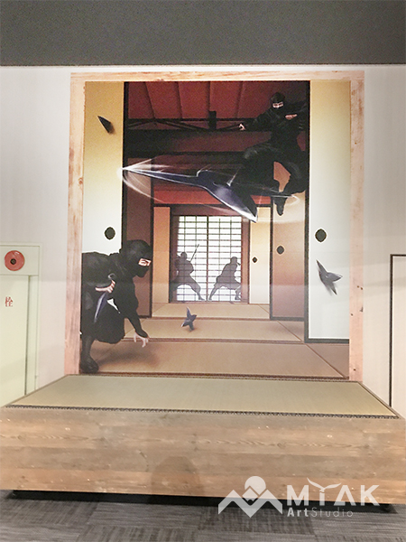 パソコンで描いた忍者と風景のイラストを印刷し、