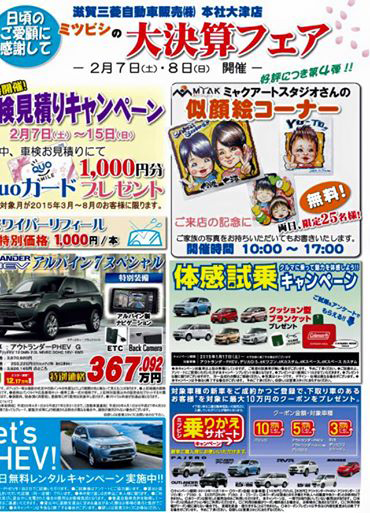 滋賀三菱自動車、大津本店様で大決算フェアに似顔絵ブースを設けます。