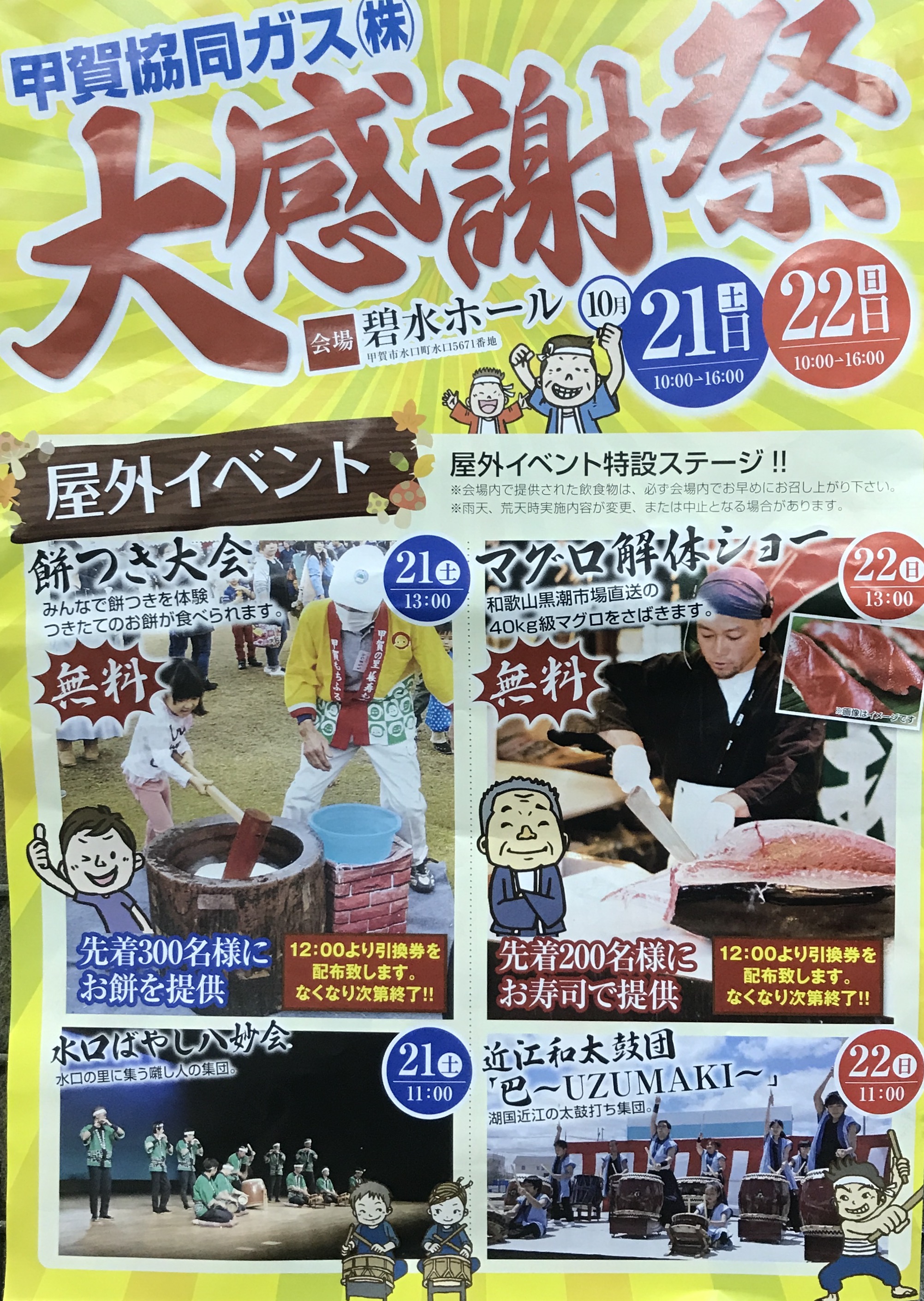 10月21日、22日 甲賀協同ガス 大感謝祭が、水口町の碧水ホールで開催されます!