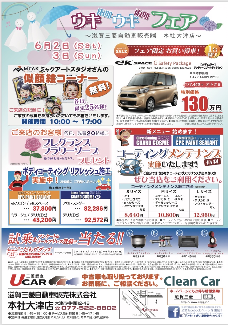 6月2、3日の今週末に滋賀三菱本社大津店にて