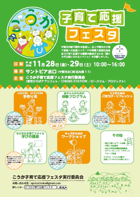 甲賀市の市政施行10周年記念提案事業として、育児関連の講演会や子育て講座など、